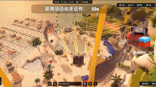 电竞嘉年华活动中,主持人根据现场运营节奏,在比赛场间多次开启限时空投活动!开启活动10s倒计时结束,飞艇将在岛屿上随机投放携带物资包的降落伞,玩家可提前预判掉落位置,并通过跑步、跳跃及卡位等轻松操作,在欢乐的氛围中争夺有限的空投礼包!获取即可在现场兑换丰厚奖励!