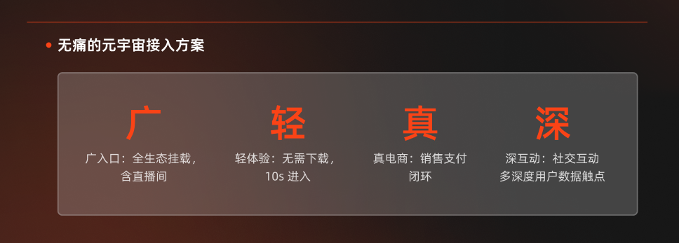 我们自始于22年发布了第一个元空间开始,已经在此领域内累计了大量的经验和技术积淀。为了降低创作者们的开发使用难度,我们基于内部的制作流程,进行了进一步封装。我们看到,借助于工具化的产品助力,能大量减少团队内部在重复性工作上的投入,让我们可以将更多的精力集中在内容的创新传达上。这样不仅能更好地帮助我们进行数字化升级,更能顺利完成品牌空间的搭建。